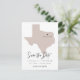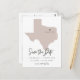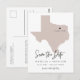 Cette carte postale à thème de voyage, à l'exception de la date, est dotée d'une carte texane et d'un support de carte postale. Changez facilement les couleurs et déplacez le coeur pour mettre en valeur votre destination. Modifiez le libellé *most* pour répondre à vos besoins et ajoutez facilement un message spécial à l'arrière de l'invitation.