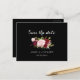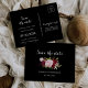 Cette carte de rappel classique tropical noir burgundy est parfaite pour un mariage rustique. Le design artistique bordo marsala présente des roses en aquarelle, vertes, roses, burgundy et blush assorties de verdure soigneusement disposées dans un bouquet de fleurs gracieux et radieux