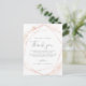 Cette aquarelle en or rose vous remercie la carte de réception est parfaite pour un mariage élégant. Le design fantaisiste est composé d'aquarelle rose vif neutre avec de belles formes géométriques et parties scintillant en feuille d'or faux rose. Placez ces cartes à la table de chaque invité à la réception de votre mariage. Personnalisez la carte avec vos noms et un message de remerciement spécial.