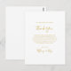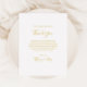 Cette carte de réception simple et élégante remerciement en or est parfaite pour votre mariage moderne minimaliste blanc et or. Le design présente une police or contemporaine minimale accompagnée de calligraphie formelle. Gardez-le tel quel ou choisissez de le personnaliser avec vos propres illustrations ou photos !
