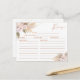 Carte de recette Boho Floral Rose Gold Fête des mariées Il s'agit d'une carte postale taille bohème fleurie carte de recette de douche nuptiale comprenant deux arrangements avec des roses, pampas herbe et palm feuilles. Cette carte recette présente également une calligraphie moderne en tête d'une parties scintillant d'or rose.