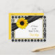 Le texte sur cette carte de recette jaune tournesol noir et blanc damassé pour la mariée est entièrement personnalisable. Vous pouvez le modifier à l'aide de l'option personnalisée. Pour effectuer des modifications plus poussées de la carte postale, y compris la modification de la police, de la couleur de police ou de la disposition de la police, choisissez l'option personnaliser. Cette carte de recette de tournesol peut être jointe à l'invitation de douche nuptiale correspondante afin que les invités de la douche nuptiale puissent remplir le dos avec leurs recettes préférées et apporter la carte avec eux à la douche comme un gardien mariage pour que la mariée soit. Vous pouvez également l'utiliser dans une invitation de fête d'anniversaire en modifiant le texte sur l'invitation et cette carte. L'invitation correspondante est présentée ci-dessous.