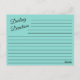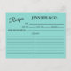 Chérie, elle va adorer ces belles cartes de recettes, un souvenir pour les années à venir. Ces cartes conçues pour correspondre à votre thème de fête ajouteront à votre invitation; demandez à vos invités d'apporter les cartes complètes avec leur recette préférée. La mariée aura une merveilleuse collection de recettes pour remplir sa maison de souvenirs d'amour, quelque chose qu'elle chérira toujours. Recherchez la coordination des classeurs de livres de recettes ainsi que d'autres idées de parti tous faisant partie de BRIDE & CO. Collection Suite mariage.