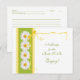 Le texte sur cette carte de recettes de marguerite et de ruban vert, jaune et blanc shasta pour la mariée est entièrement personnalisable. Vous pouvez le modifier à l'aide de l'option personnalisée. Pour effectuer des modifications plus poussées de la carte de recette, y compris la modification de la police, de la couleur de police ou de la disposition de la police, choisissez l'option personnaliser. Cette carte de recette peut être jointe à l'invitation de la douche nuptiale correspondante afin que les invités de la douche nuptiale puissent remplir le dos avec leurs recettes préférées et apporter la carte avec eux à la douche comme un gardien mariage pour que la mariée soit. Vous pouvez également l'utiliser dans une invitation de fête d'anniversaire en modifiant le texte sur l'invitation et cette carte. L'invitation correspondante est présentée ci-dessous.