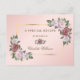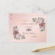 Créez une belle carte de recette pour la mariée avec des roses roses et de la verdure encadrant les détails de la carte de recette. Carte de recette florale rose et or. Personnalisez facilement en ligne.