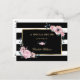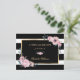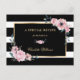 Créez une belle carte de recette pour la mariée en utilisant notre élégant modèle de carte de recettes florales rayées noir et blanc avec des fleurs roses et de la verdure.