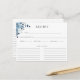 Jolie carte de recette florale aquarelle bleu poussiéreux et marine.
