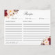 Postale Carte de recette florale rose bordeaux d'aquarelle