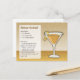 Un verre de cocktail Sidecar avec une bande de croûte de citron avec boîte de recette sur arrière - plan beige.