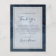 Cette carte de remerciement ciel céleste avec cadre est parfaite pour votre mariage enchanteur sous les étoiles. Le ciel aquarelle bleu marine foncé, parsemé d'étoiles argentées, donnera le ton pour votre soirée de mariage bohème en plein air. Personnalisez-la comme vous le souhaitez ou laissez-la telle quelle. N'oubliez pas de parcourir le reste de la collection pour compléter votre thème de mariage !