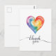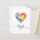 Postale Carte de remerciement cœur arc-en-ciel aquarelle