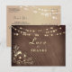 Envoyez vos sincères remerciements avec cette carte postale de remerciement de mariage rustique. Avec une texture de faux bois chaleureuse, des guirlandes lumineuses et des accents floraux dorés, c'est une façon charmante et élégante de remercier vos invités après votre journée spéciale.