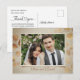 Carte de remerciement de mariage élégante avec feuille d'or et carte postale photo.