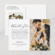 Cette élégante carte de remerciement semi-illustrée présente une calligraphie ornée sur la gauche et votre photo de mariage sur la droite, créant un design magnifiquement équilibré. Le bloc de message éditable, la formule de politesse "avec amour", les noms des mariés et la date sont entièrement personnalisables. Un choix sophistiqué pour les couples qui aiment la calligraphie classique associée à une touche personnelle de photo.