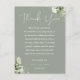 Une élégante carte de remerciement de réception de mariage floral vert sauge. Personnalisée avec votre message de remerciement spécial dans une typographie élégante. Un souvenir spécial de remerciement pour vos invités. Conçue par Thisisnotme