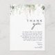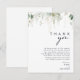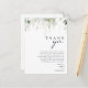 Nous avons conçu cette carte de remerciement avec feuillage et feuilles d'or pour compléter votre réception bohème simple et élégante. Elle présente des feuilles d'eucalyptus vertes et blanches modernes, du feuillage de fougère, une fleur de succulente et des feuilles en feuille d'or minimalistes. Ces éléments donnent l'impression d'une forêt enchantée aquarelle fantaisiste, parfaite pour tout mariage rustique et bohème ! N'hésitez pas à la personnaliser pour qu'elle soit vôtre ; n'hésitez pas non plus à parcourir le reste de la collection pour trouver des produits assortis et coordonnés !