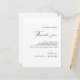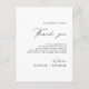 Dites merci à vos invités avec cette carte de réception "Merci" au script de calligraphie simple. La typographie de script chic classique avec un design minimaliste noir et blanc la rend parfaite pour n'importe quel thème de mariage. Le script de calligraphie élégant ajoute une touche fantaisiste à la carte, ce qui en fait un moyen idéal d'exprimer votre gratitude. Vous pouvez facilement personnaliser cette carte en cliquant sur "Personnaliser" et en entrant vos informations. Jetez un coup d'œil au reste de la collection pour voir tous les articles assortis disponibles dans ce beau design. Parfait pour une décoration de lettre de remerciement classique pour les invités, cette carte est sûre d'impressionner vos invités.