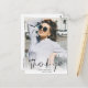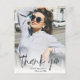 une carte de conception de superposition de photo avec une photo personnalisée et un texte de script noir élégant. N'hésitez pas à personnaliser l'image et le message de remerciement au dos.