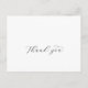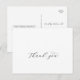 Cette carte postale élégante de remerciement est parfaite pour un mariage simple. Le design minimaliste noir et blanc présente une typographie romantique fantaisiste avec un style glamour moderne. Personnalisable dans n'importe quelle couleur. Gardez le design minimaliste et élégant, tel quel, ou personnalisez-le en ajoutant vos propres graphiques et illustrations. Personnalisez le verso de la carte postale avec vos noms, votre adresse de retour et un message de remerciement. Vous pouvez également laisser la section du modèle de message de remerciement vierge pour écrire à la main une note personnalisée et réfléchie sur chaque carte après leur arrivée. Ces cartes peuvent être utilisées pour un mariage, une fête de fiançailles ou tout événement spécial.