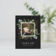Cette carte de remerciement présente de l'eucalyptus aquarelle peint, des feuilles vertes, des baies rouges, des branches de pin avec un cadre carré en faux or sur fond noir. Pour une personnalisation plus avancée de ce design, veuillez cliquer sur le lien "Personnaliser davantage". Des articles assortis sont également disponibles.