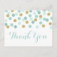 Utilisez nos cartes de remerciement à points polka menthe et or pour remercier vos invités de votre baby shower ou fête. Si vous préférez écrire un mot manuscrit au dos, vous pouvez facilement supprimer le texte dans ces champs avant d'ajouter les cartes à votre panier. Cette carte de remerciement menthe et or est parfaitement coordonnée avec nos invitations à points polka pailletés et notre collection de baby shower, vendues séparément.