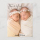 Célébrez double amour avec cette élégante et personnalisable carte de remerciement pour jumelles. Avec trois précieuses photos et les noms de vos jumelles, c'est un moyen parfait d'exprimer votre gratitude pour les vœux chaleureux et les cadeaux attentionnés reçus. Idéal pour envoyer à la famille et aux amis après l'arrivée de vos jumelles. Personnalisez facilement le texte et les photos pour créer un souvenir que vous chérirez toujours.