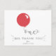 Conçue pour aller avec l'invitation pour un premier anniversaire avec ballon, ce ballon rouge écrit un doux et simple merci à vos invités de la fête. Personnalisez le texte en bas ainsi que la signature. La couleur du ballon est également disponible en rose et bleu. Au verso de la carte postale, personnalisez votre adresse de retour pour un envoi facile. Ajoutez également votre photo préférée de l'enfant qui fête son anniversaire.