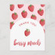 Célébrez la joie des nouveaux départs avec nos charmantes cartes de remerciement "Merci beaucoup" pour Baby Shower, à l'effigie de fraises sucrées, avec un motif de fraises délicieux dans des tons de rouge doux associés à un arc et une typographie script moderne. Ces adorables cartes de remerciement pour shower aux fraises sont le choix idéal pour exprimer votre gratitude avec style et correspondent à votre Baby Shower au thème sucré et fruité.