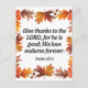 Plongez-vous dans l'esprit de gratitude avec notre collection Give Thanks, inspirée de la vérité intemporelle du Psaume 107:1, « Louez le Seigneur, car il est bon ; son amour dure à toujours. » Cette collection sert de rappel sincère de la bonté constante et de l'amour sans limite de Dieu. Chaque article est conçu avec prière pour vous aider à exprimer votre gratitude et à partager ce message puissant avec les autres. Que vous décoriez votre maison, que vous offriez un cadeau à un être cher ou que vous cherchiez un encouragement quotidien, la collection Give Thanks est créée pour élever votre esprit et maintenir votre cœur centré sur la bonté éternelle de Dieu.