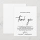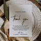 Ce carte de remerciements de réception en calligraphie géante est parfait pour un mariage moderne. Le design est caractérisé par une typographie élégante mais rustique pour un look simple et minimal. Placez ces cartes à la table de chaque invité à la réception de votre mariage. Personnalisez la carte avec vos noms et un message de remerciement spécial.