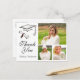 Arrière - plan blanc avec tableau de mortier graphique, goût et diplôme, classe carte de remerciements de graduation personnalisable avec 3 de vos propres photos téléchargées est un bon geste pour les invités. donnez un merci spécial à la famille et les amis, et chacun pour leurs cadeaux sincères et la présence à votre fête de graduation ou cérémonie.