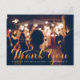 Ce carte de remerciements photo mariage présente une grande photo de votre mariage avec "Merci" en faux texte or cursif et votre propre message à l'arrière.