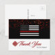 Firefighter Thin Red Line / Fire Dept Merci Carte postale - une excellente façon de dire merci et de montrer votre soutien. Vous pouvez customiser cette carte postale avec votre propre message en sélectionnant le bouton customiser.