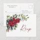 Créez votre propre carte de réponse avec ce modèle de « carte postale de réponse pour un mariage de Noël avec poinsettia rouge élégant » pour correspondre à votre style de mariage, vos couleurs et votre thème.