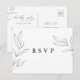 Postale Carte de réponse RSVP avec feuillage dessin linéai