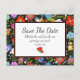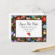 Carte de sauvegarde de date avec un motif floral d'art populaire mexicain coloré sur fond noir.