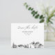 Invitation de carte postale de sauvegarde de date moderne en noir et blanc sur papier mat. Le devant présente un croquis époustouflant, qui donne le ton parfait pour votre jour de mariage. Ajoutez et personnalisez le texte pour le rendre vôtre. Entrez dans l'outil de conception Zazzle pour des personnalisations de conception supplémentaires. Arrive automatiquement sur papier mat. Ajustez à semi-brillant si vous préférez.