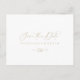 Cette carte de sauvegarde horizontale en calligraphie dorée est parfaite pour un mariage rustique. Le design simple et élégant présente une typographie de script classique et sophistiquée en or.
