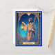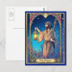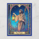 Carte postale dans une interprétation de la carte de l'Arcane Majeur "l'Ermite", une figure en robe tenant une lanterne et un bâton, symbolisant l'introspection et la sagesse. Le fond d'un ciel nocturne étoilé avec un feuillage luxuriant et coloré donne une esthétique mystique Art Nouveau.