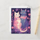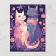 Une belle carte de voeux avec deux chats célestes entourés de fleurs et d'étoiles. Parfait pour toutes les occasions, cette carte capte une atmosphère magique et rêveuse avec des couleurs pastel douces.