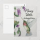 Célébrez son 70e anniversaire avec un élégant motif de colibri sur une jolie carte. Créée à partir de ma peinture originale à l'aquarelle, l'image charmante de l'oiseau et de la fleur illuminera la journée des amateurs d'oiseaux, des jardiniers et des amoureux de la nature. La femme spéciale dans votre vie aimera les couleurs pastel de crème, de rose et de vert sarcelle peintes dans le style réaliste doux de l'art botanique.