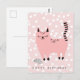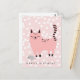 NewParkLane - Voici des ennuis ! Carte de vœux d'anniversaire pour enfants, avec un mignon dessin animé rose sur fond rose à pois blancs.