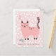 NewParkLane - Voici des ennuis ! Carte d'anniversaire pour enfants, avec un mignon dessin animé rose sur fond rose à pois blancs.
