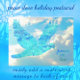 Une colombe d'un bleu vibrant, créée avec une apparence de dentelle géométrique, s'envole à travers des nuages ondoyants et un ciel bleu. Le message sur le devant indique "paix, joie, amour". Le message prédéfini au dos indique : Meilleurs vœux pour une année nouvelle heureuse et saine. Il est facile de personnaliser ce message et il existe également un modèle pour votre nom.
