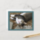 Cette carte de vœux adorable dit : "Rétablissez-vous vite". Elle montre une photographie d'un charmant chat tigré aux yeux verts rêveurs, au petit nez rose tacheté, à la poitrine blanche et aux pattes blanches. Big Boy lève les yeux et pose pour sa photo avant de faire une sieste sur la terre et les aiguilles de pin qui ont été réchauffées par le soleil. Une carte de vœux parfaite pour tous les amoureux des chats.