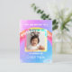 Carte d'invitation d'anniversaire avec un fond doux et arc-en-ciel de style aquarelle et la photo de votre enfant. Personnalisez l'invitation en utilisant les invites de personnalisation. HAMbyWhiteGlove aka HAMbyWG