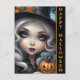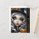 Envoyez des salutations effrayantes avec notre carte de vœux Halloween Sorcière mignonne et effrayante avec citrouille sculptée. Cette carte représente une illustration en gros plan d'une poupée de sorcière aux yeux bleus captivants, berçant une citrouille sculptée avec minutie. Les mots "Joyeux Halloween" ornent le côté, créant l'atmosphère parfaite pour une célébration ensorcelante. Partagez l'esprit d'Halloween avec cette carte charmante et légèrement sinistre.