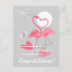 Un couple de flamants roses avec les cous courbés pour former un cœur se tiennent dans la mer sur une plage au clair de lune. Un design élégant et romantique avec une touche rétro créé dans une palette de couleurs rose, gris et blanc avec un fond changeant de couleur. Un design personnalisable pour que vous puissiez le personnaliser avec votre propre texte, vos images et vos idées. Une image d'art numérique originale.
