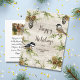 Célébrez la saison avec cette carte de Noël présentant une illustration sur le thème des oiseaux de la forêt sur fond de bois patiné à l'avant et une note personnelle personnalisée et votre photo au verso. Supprimez facilement ces options. Cette carte postale est sûre de faire sourire les amis et la famille.