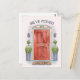 Carte de vœux incroyable qui présente une porte rouge d'une maison avec des plantes et la citation personnalisée "Nous avons déménagé". Fonctionne très bien pour tout design lié à la journée de déménagement. Profitez-en !